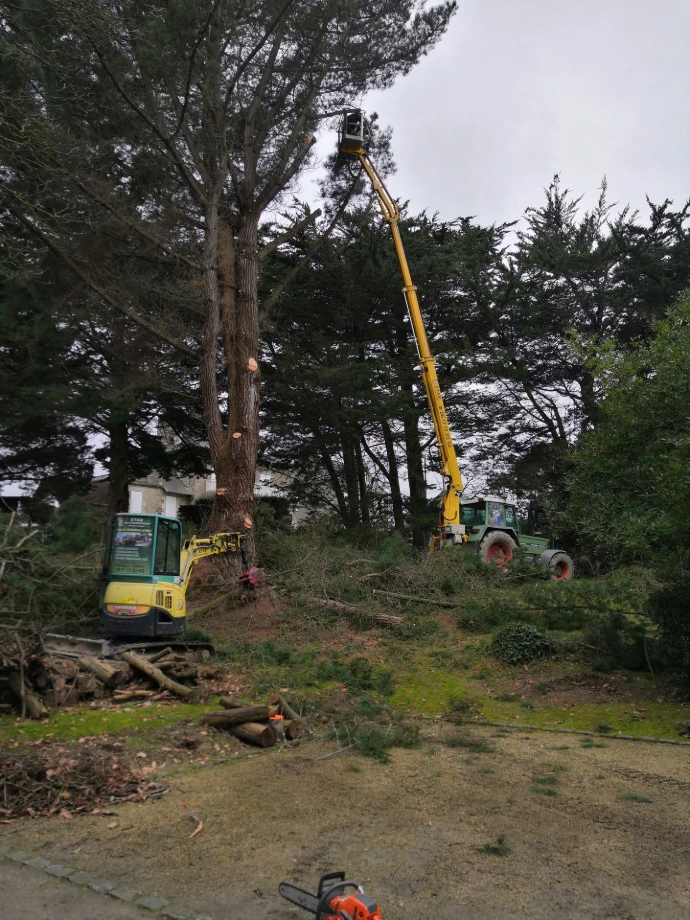 Travail d'abattage avec nacelle, élagage, ainsi que les interventions d’entretien et de sécurisation.